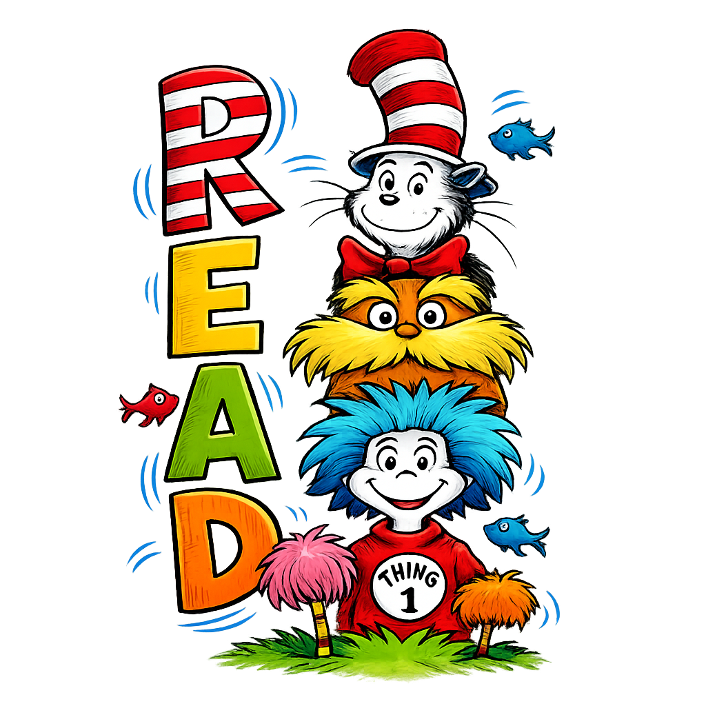 Read png on front and dr Seuss day on back. Size 4t or XS